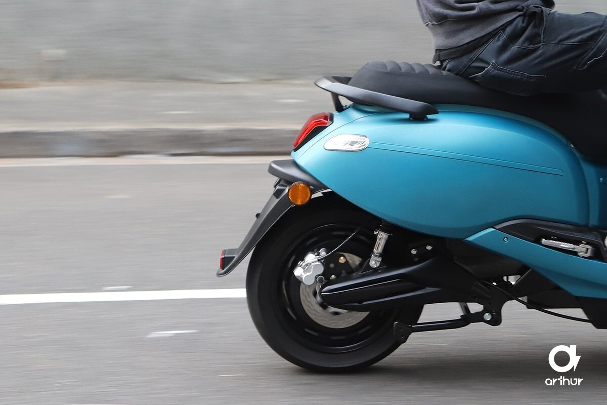 De scooter beschikt over een 5.500 watt elektromotor met een topsnelheid van 65 km/u.