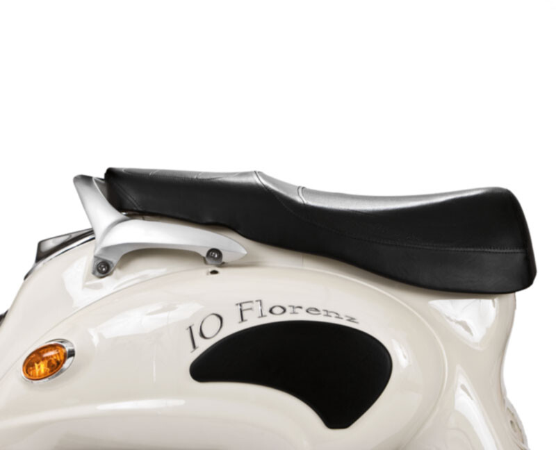 De Florenz beschikt over een krachtige 3.500 watt elektromotor met een beperkte topsnelheid van 45 km/u.