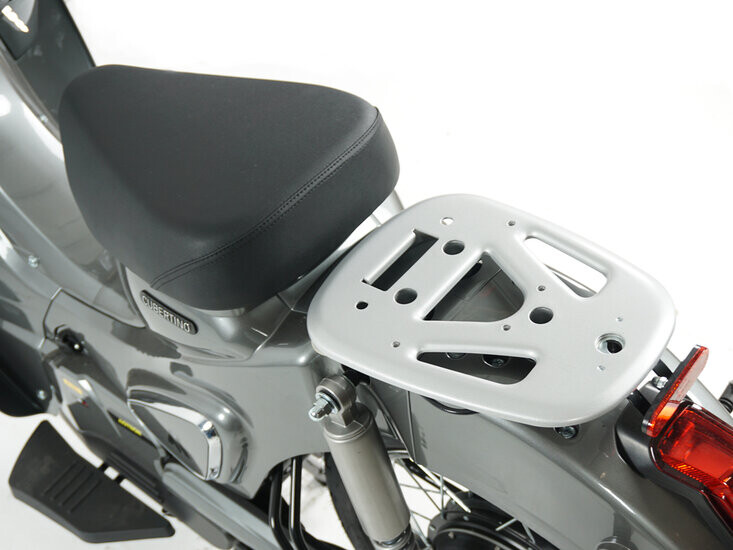 De bromfiets beschikt over een verwijderbare 26 Ah lithium-accu met een rijbereik van 56 km.